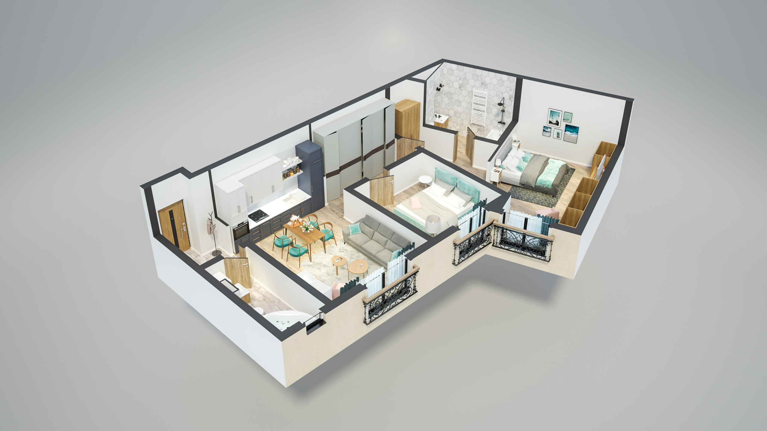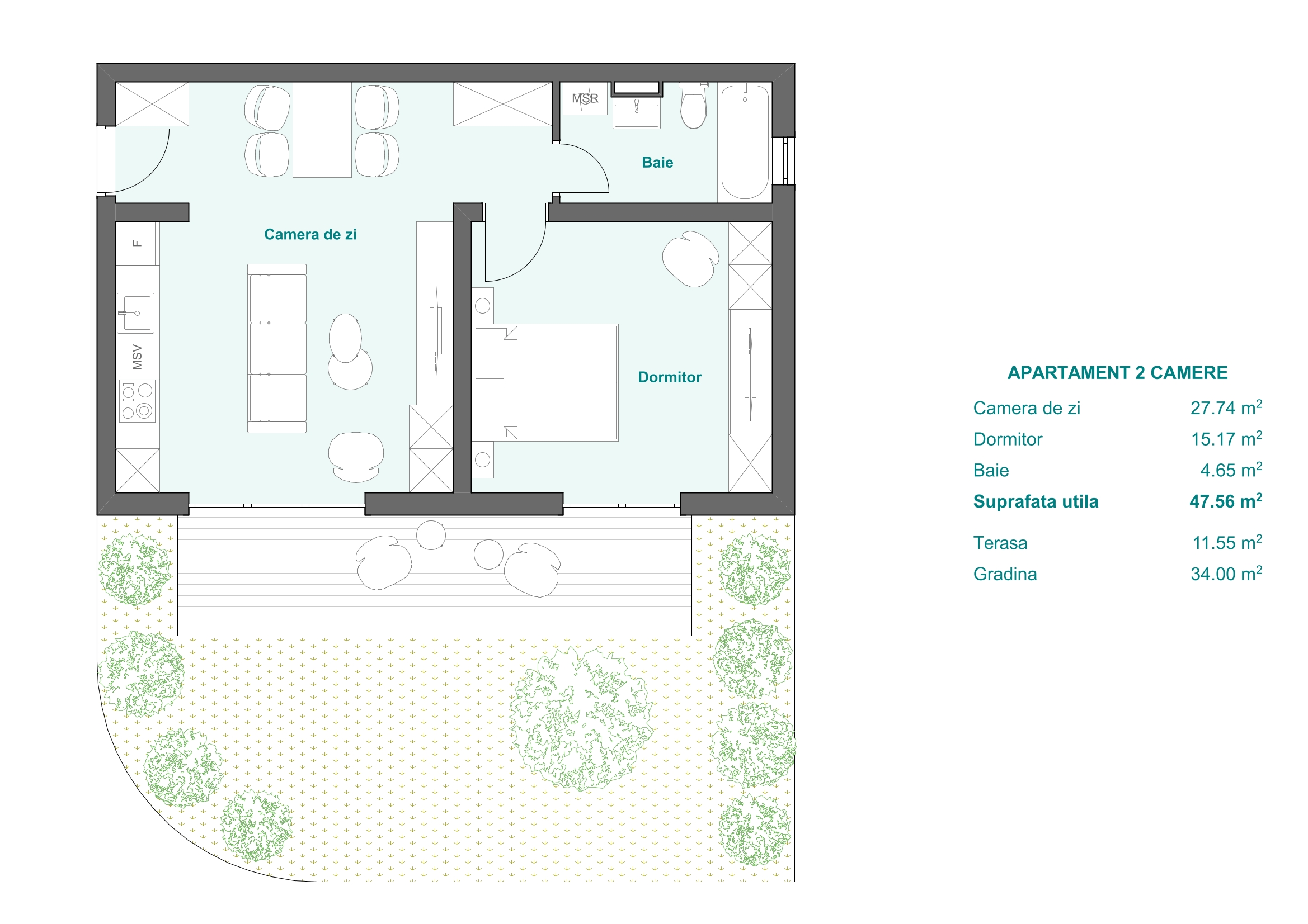 D6 - Apartament 2 camere, etaj 2, 48 mp + 50 mp terasă