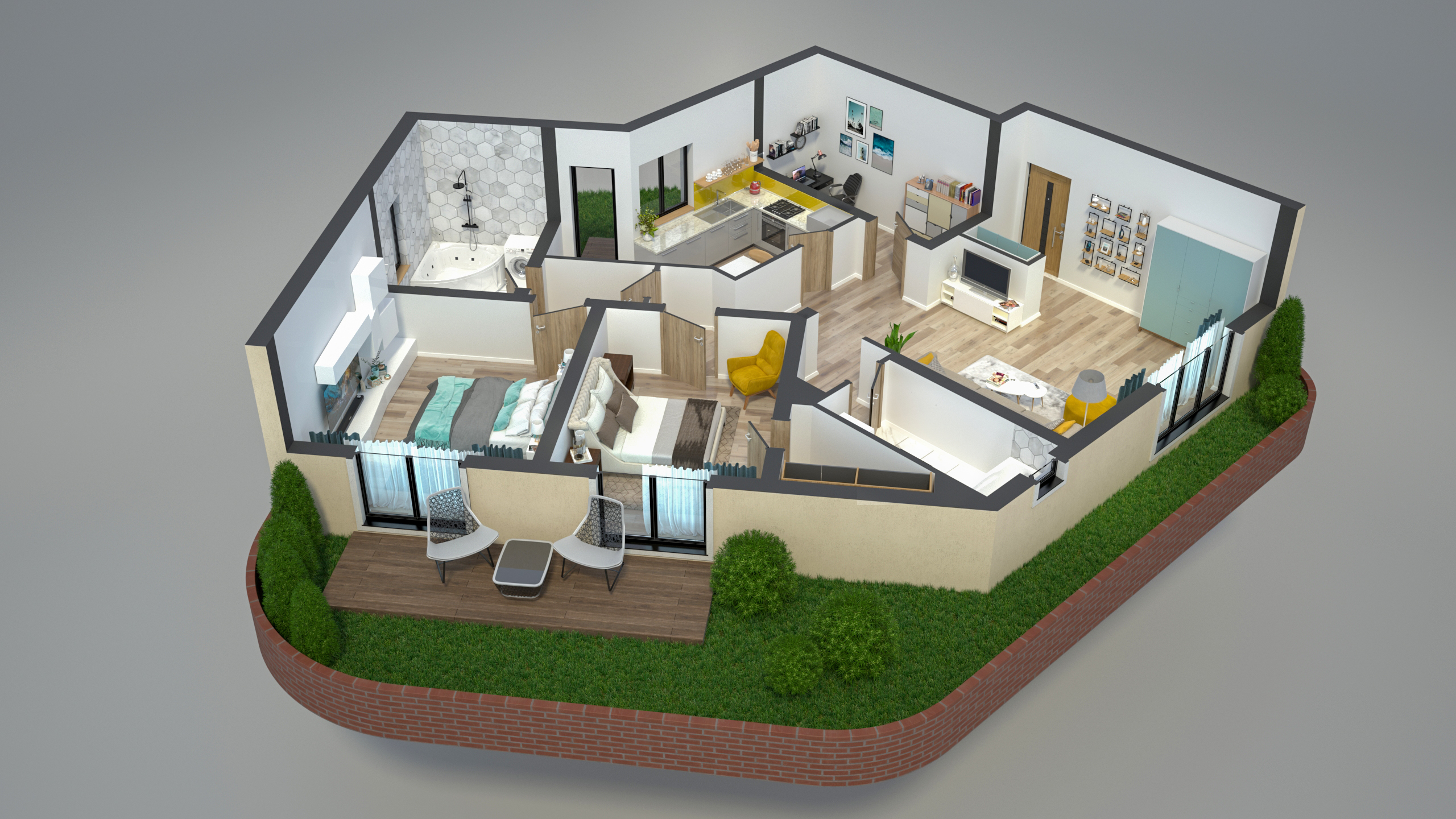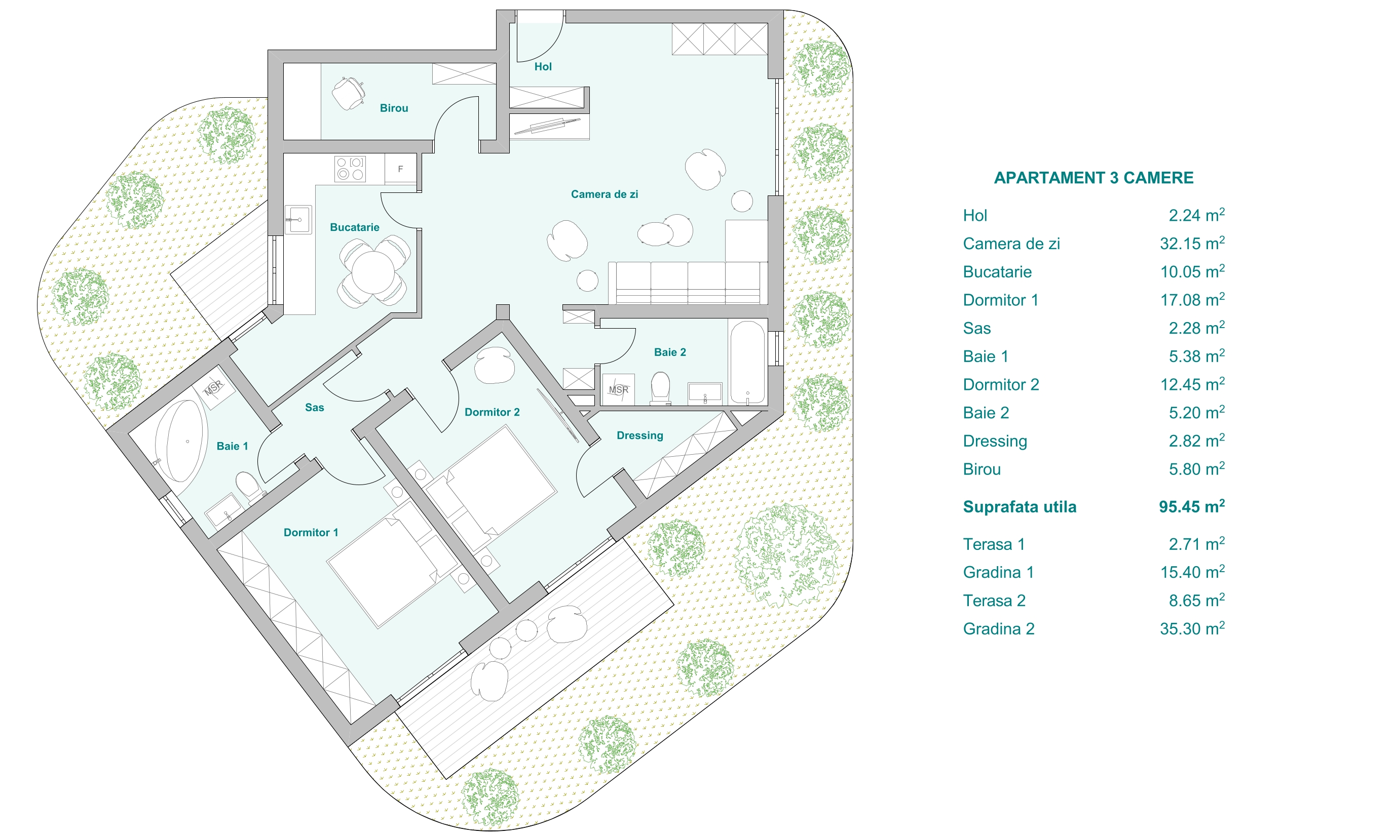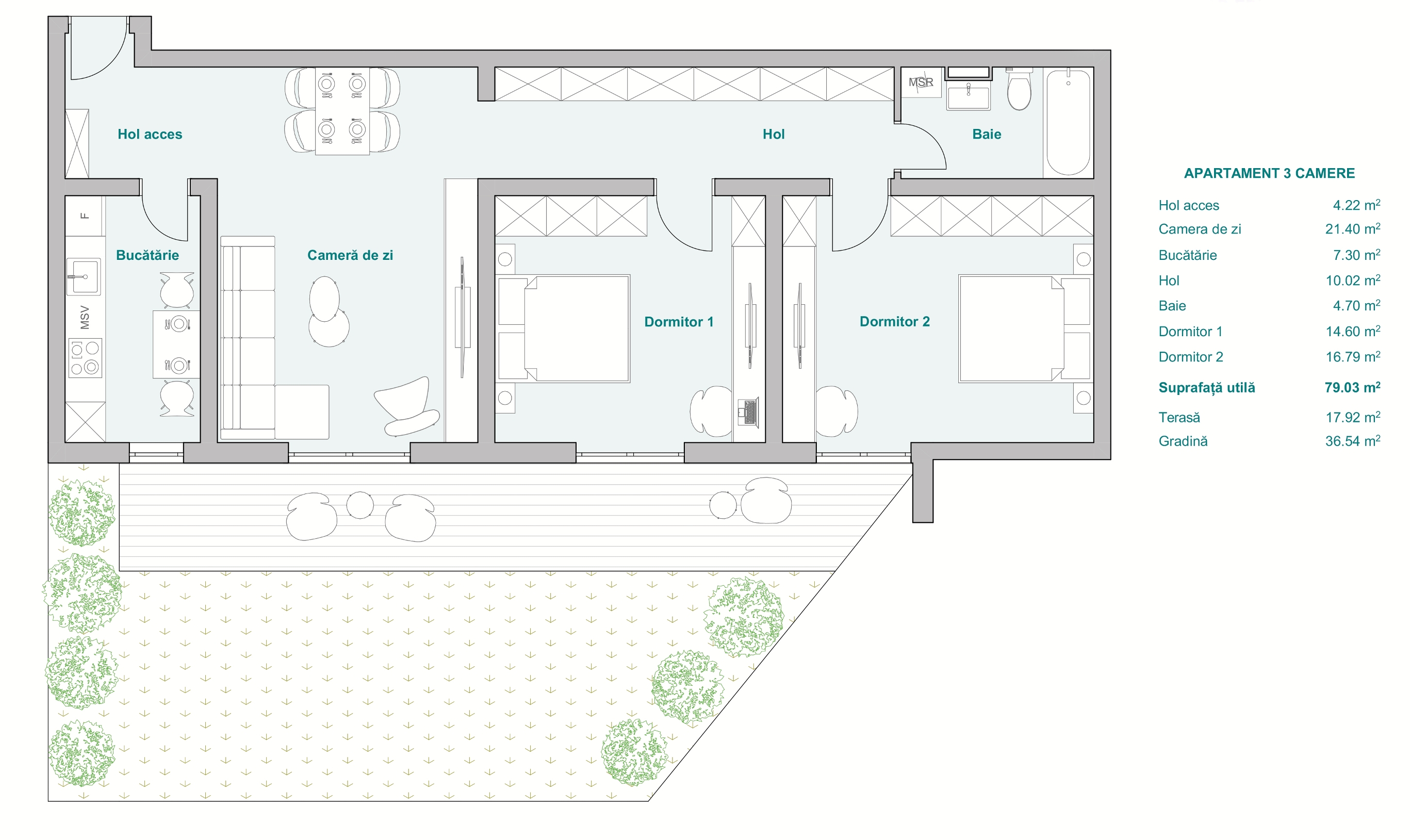 E9 – Apartament 3 camere, etaj 2, 82 mp + 100 mp terasă