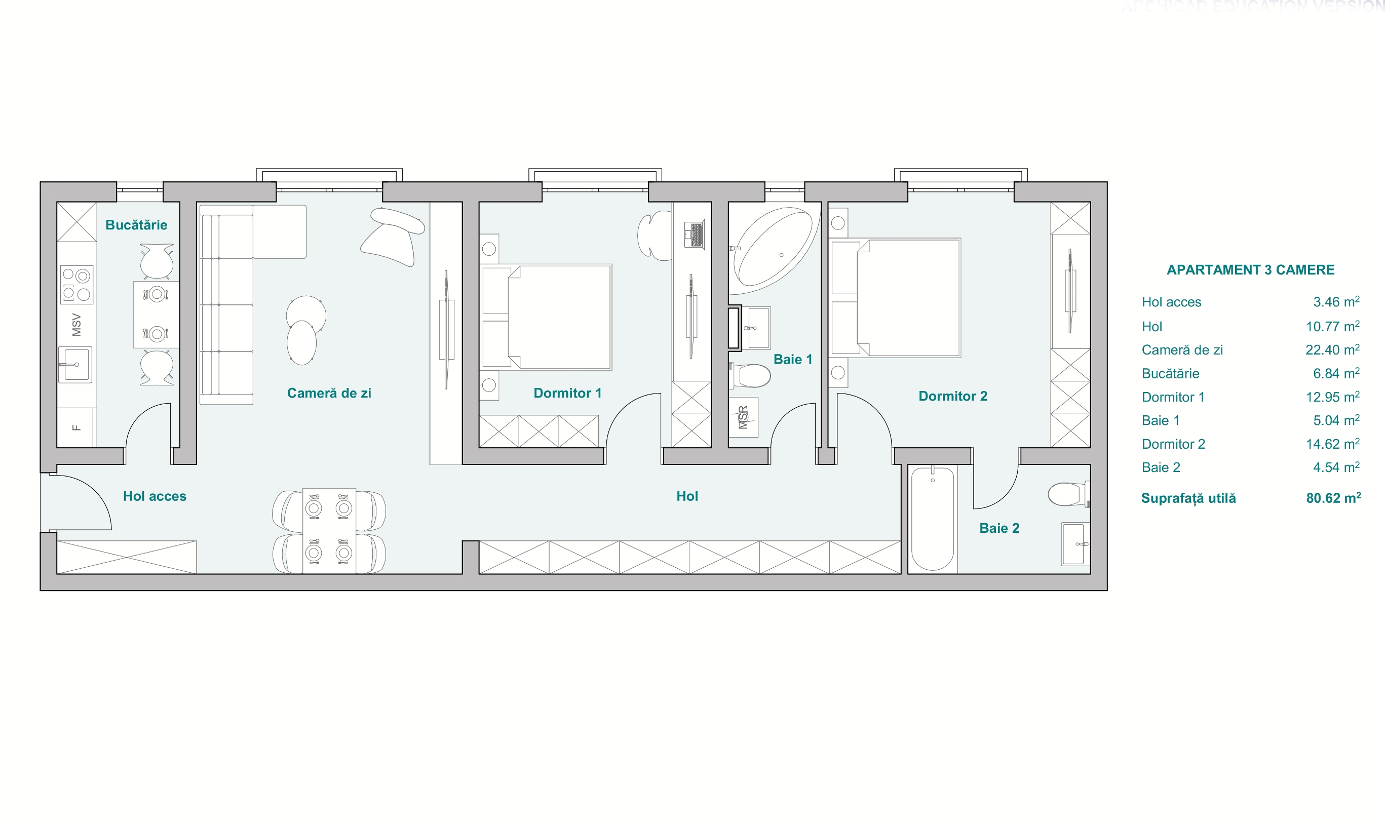 E5 – Apartament 3 camere, etaj 1, 82 mp