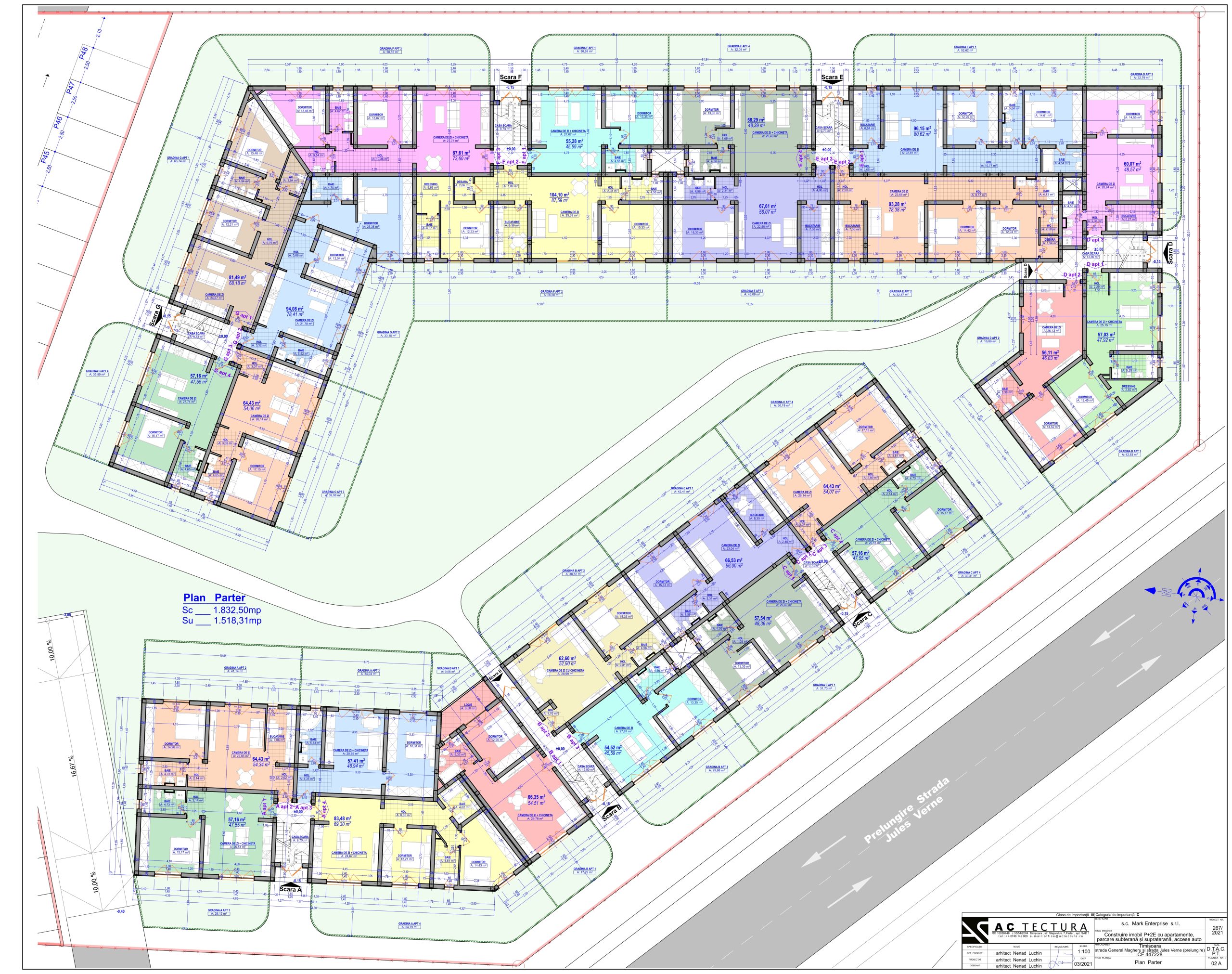G10 - Apartament 3 camere etaj 2, 78 mp + 150 mp terasă